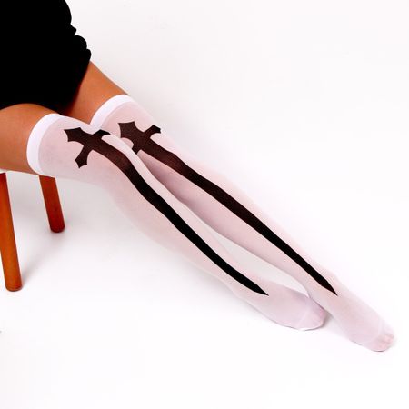 Чулки на хеллоуин «Монашка», белые. Карнавальные чулки — незаменимый атрибут для Хэллоуина и тематических вечеринок! Наденьте их с юбкой или платьем, и вы точно будете в центре внимания. Такой аксессуар добавит мистики и таинственности в ваш образ.