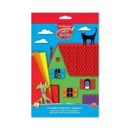 Цветная бумага мелованная самоклеящаяся формата В5 (170х247 мм). Яркие насыщенные цвета. В папке 10 листов, 10 цветов. Плотность наполнения — 152 г/м2. Папка с европодвесом из плотного мелованного картона. На оборотной стороне папки приводятся инструкции по изготовлению поделок.
