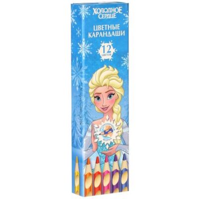 Цветные карандаши, 12 цветов, трехгранные, «Холодное сердце».
