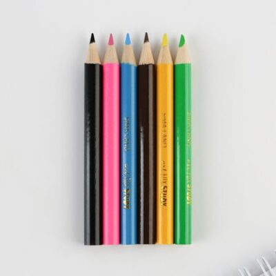 Цветные карандаши мини, заточенные, круглые 6 цветов, деревянные. Цветные карандаши идеально подойдут для детского творчества, рисования, раскрашивания и эскизов. Отлично ложатся на бумагу оставляя яркий устойчивый след, имеют прочный грифель, который не крошится во время заточки и письма. Преимущества • Насыщенные цвета; • Легко точить; • Из 100% древесины; • Имеет прочный грифель; • Не крошатся во время заточки и письма; • Хорошо ложатся на бумагу, оставляя яркий и устойчивый след; • Диаметр грифеля 2,5 мм. Характеристика <ul> <li> Количество цветов: 6;</li> <li> Форма: круглая;</li> <li> Европодвес: да.</li> </ul> Состав Дерево, графит.
