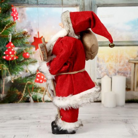 Дед Мороз под елку «Зимнее волшебство. Новогодняя игрушка приветствующая», 45 см. Дед Мороз в красной шубке станет милым дополнением вашего новогоднего интерьера. Этот персонаж органично дополнит пространство под елкой, на полке или в фотозоне. <b> Особенности</b> <ul> <li> Высота — 45 см, что делает его заметным элементом интерьера.</li> <li> Красная шубка создает атмосферу праздника и напоминает о зимней сказке.</li> <li> Приветственный жест Деда Мороза добавляет композиции душевности и тепла.</li> <li> Без источников питания и сложного ухода, он легко впишется в любую обстановку.</li> </ul> <b> Создайте праздничную атмосферу</b> Этот персонаж напомнит о зимних вечерах, радости подарков и семейных традициях. Приветственный жест символизирует гостеприимство и тепло, которые Дед Мороз приносит с собой. Он легко впишется в любую композицию: под елку, на каминную полку или в центр стола.