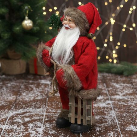 Дед Мороз под елку «Зимнее волшебство. Новогодняя игрушка в красном костюме, с санками», 30 см. Погрузитесь в атмосферу праздника с этой очаровательной фигурой высотой 30 см. Красный костюм и деталь в виде санок создают традиционный новогодний образ, который станет ярким акцентом вашего интерьера. <b> Особенности</b> <ul> <li> Классический дизайн идеально вписывается как в советский стиль, так и в современные направления.</li> <li> Компактные размеры делают его универсальным для размещения под елкой или на полке, не перегружая пространство.</li> <li> Натуральные элементы декора, такие как санки, добавляют природной текстуры и ощущения уюта.</li> </ul> <b> Создание праздничного настроения</b> Украшение сочетает в себе черты новогоднего барокко и современного дизайна, превращая любое помещение в уголок зимней сказки. Благодаря продуманному исполнению, оно станет символическим элементом вашего праздничного оформления. Добавьте в свой дом частичку магии Нового года — пусть этот Дед Мороз станет центральной фигурой вашей елочной композиции!