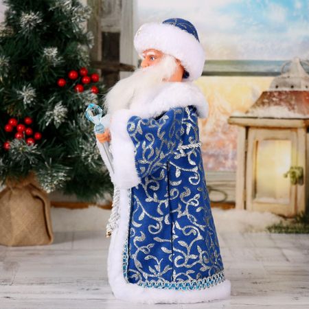 Дед Мороз под елку «Зимнее волшебство. Посох с кристаллом» двигается, 38 см, синий. Добавьте в свой праздник символичную фигуру высотой 38 см. Синий «Дед Мороз с кристаллическим посохом» станет ярким элементом новогоднего декора, привнося движение и атмосферу волшебства. <b> Особенности</b> <ul> <li> Фигура оснащена механизмом движения, создавая ощущение живого присутствия.</li> <li> Питание от батареек обеспечивает автономность работы без необходимости подключения к сети.</li> <li> Стильный синий наряд персонажа добавляет современной нотки классическому образу.</li> </ul> <b> Идеальный акцент для интерьера</b> Украшение идеально сочетается с различнями стилями интерьера. Его компактные размеры делают его универсальным решением для любой елки или праздничной композиции. Поставьте его под елку — и он станет центральной фигурой вашего праздничного оформления. Создайте свою историю зимней сказки — пусть этот Дед Мороз подарит вам частичку волшебства!