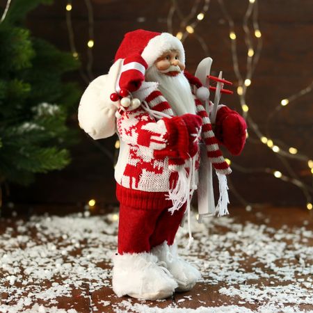 Дед Мороз под елку «Зимнее волшебство. Новогодняя игрушка в вязаном костюме, с лыжами и мешком», 30 см. Добавьте уют и магию зимы в ваш дом! Фигурка «Дед Мороз с лыжами и мешком, 30 см» станет идеальным украшением новогоднего интерьера. Этот персонаж органично дополнит пространство под елкой, на полке или в фотозоне. <ul> <li> <strong> Удобный размер:</strong> Высота фигурки — 30 см, что делает ее заметной, но не громоздкой для декора.</li> <li> <strong> Вязаный костюм:</strong> Теплый и уютный образ Деда Мороза создает атмосферу домашнего праздника, напоминая о традициях и семейном уюте.</li> <li> <strong> Лыжи и мешок:</strong> Эти элементы добавляют композиции динамику и символизируют зимние приключения и щедрость праздника.</li> <li> <strong> Простота использования:</strong> Без источников питания и сложного ухода, фигурка легко впишется в любую обстановку.</li> <li> <strong> Универсальный стиль:</strong> Подходит для интерьеров в стиле новогоднего барокко, скандинавского дизайна или фьюжн.</li> </ul> <strong> Создайте праздничную атмосферу</strong> Эта фигурка напомнит о зимних прогулках, радости подарков и семейных традициях. Лыжи и мешок символизируют активный отдых и щедрость праздника, превращая украшение в часть новогодней истории. Она легко впишется в любую композицию: под елку, на каминную полку или в центр стола.