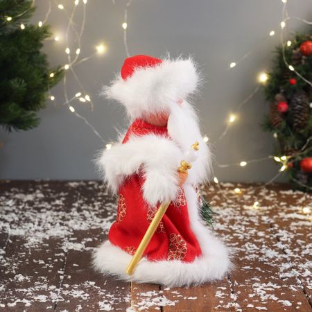 Дед Мороз под елку «Зимнее волшебство. Новогодняя игрушка в шубе, с мешком» двигается, 30 см, красный. Превратите свой дом в центр зимней сказки с этой динамичной фигурой высотой 30 см. Пушистая шуба и мешок для подарков создают традиционный образ, который оживает благодаря движению. <b> Особенности</b> <ul> <li> Механизм движения придает персонажу живость, привлекая внимание и создавая атмосферу праздника.</li> <li> Красный цвет костюма и текстура пушистой шубы добавляют яркости и уюта вашему интерьеру.</li> <li> Питание от батареек делает использование простым и удобным без необходимости подключения к электросети.</li> </ul> <b> Идеальное дополнение для вашего декора</b> Украшение идеально сочетается с элементами новогоднего барокко, создавая роскошную и торжественную атмосферу. Его компактный размер позволяет разместить как под елкой, так и на полке или комоде, где он станет заметным акцентом вашего праздничного оформления. Добавьте в свой дом частичку волшебства — пусть этот Дед Мороз станет символом вашего праздника!