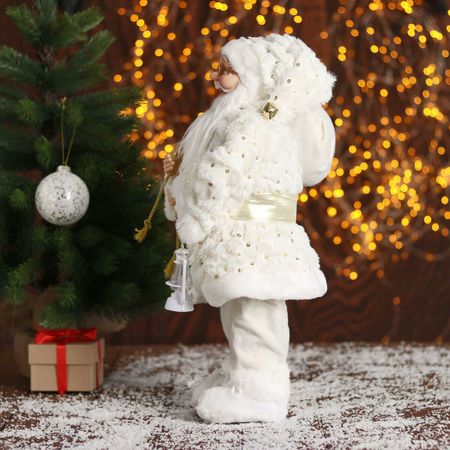 Дед Мороз под елку «Зимнее волшебство. В шубке с подарками» 45 см. Окунитесь в атмосферу детства и веселья с фигуркой высотой 45 см. Образ Деда Мороза в белой шубке создает неповторимую ауру уюта и праздника. <b> Особенности</b> <ul> <li> Вязаный костюм добавляет изделию текстуры и природной теплоты, превращая его в настоящее рукотворное чудо.</li> <li> Компактные размеры делают его идеальным для размещения под елкой или на полке без перегрузки пространства.</li> <li> Тематика зимних забав подчеркивается деталью лыж, что особенно актуально для любителей активного отдыха.</li> </ul> <b> Стильный выбор для вашего декора</b> Украшение сочетает в себе черты новогоднего барокко и скандинавского минимализма, создавая универсальный стиль, который впишется в любой интерьер. Его размер и дизайн делают его идеальным дополнением как классических, так и современных композиций. Добавьте в свой дом частичку зимней сказки — пусть этот Дед Мороз станет символом вашего праздника!