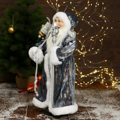 Главная » Товары для детей Дед мороз под елку Просмотров 4 Дед Мороз под елку «Зимнее волшебство. В серо-синей шубе, с посохом и подарками», 45 см. Зимнее волшебство