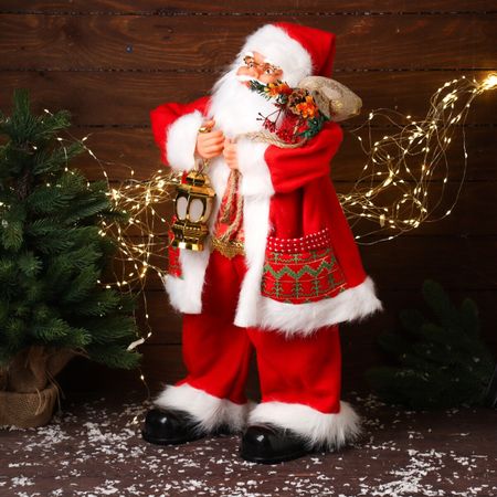 Дед Мороз под елку «Зимнее волшебство. Новогодняя игрушка в шубке, в очках, с фонариком», двигается, с подсветкой, 70 см. Пригласите в свой дом символ праздника вместе с фигуркой высотой 70 см. Красная шубка, очки и фонарик создают современный образ Деда Мороза, который оживает благодаря движению и подсветке. <b> Особенности</b> <ul> <li> Светодиодная подсветка добавляет яркости и привлекает внимание даже в темноте.</li> <li> Механизм движения придает персонажу динамику, делая его более живым и энергичным.</li> <li> Автономное питание от батареек гарантирует простоту использования без необходимости подключения к электросети.</li> </ul> <b> Универсальное украшение для вашего интерьера</b> Украшение идеально сочетается как с роскошным новогодним барокко, так и со скандинавским минимализмом. Его внушительный размер делает его заметным элементом декора, способным стать центральной фигурой вашего праздничного оформления. Добавьте в свою елочную композицию частичку зимней магии — пусть этот Дед Мороз подарит вам и вашим гостям радость и уют!