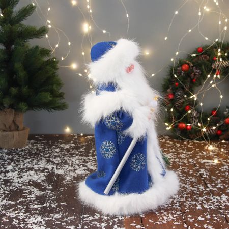 Дед Мороз под елку «Зимнее волшебство. Новогодняя игрушка в шубе, с мешком» двигается, 40 см, синий. Добавьте праздничной атмосферы с этой динамичной фигурой высотой 40 см. «Дед Мороз в шубке» добавит блеска и движения вашему новогоднему оформлению. <b> Особенности</b> <ul> <li> Музыка и движения придают персонажу живость, привлекая внимание гостей и создавая атмосферу волшебства.</li> <li> Нежные оттенки костюма добавят торжественности, прекрасно сочетаясь с любым интерьером.</li> </ul> <b> Идеальное украшение для вашего дома</b> Украшение органично вписывается как в классические, так и в современные стили оформления. Пусть этот Дед Мороз подарит вам частичку зимней магии и станет главным героем вашего праздника!