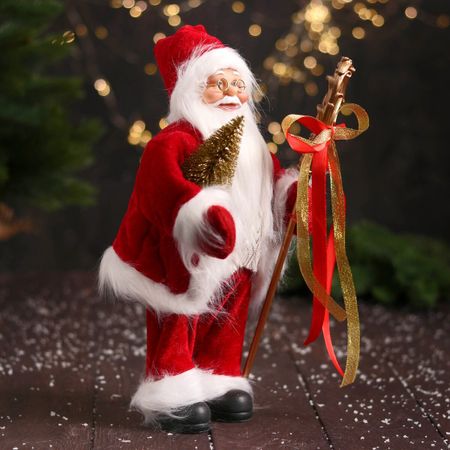 Дед Мороз под елку «Зимнее волшебство. В кафтане с мехом и узорным посохом», 30 см, бело-красный. Фигурка «Дед Мороз в кафтане с мехом и узорным посохом, 30 см» станет изысканным дополнением Вашего новогоднего декора и создаст атмосферу праздника. Эта композиция органично дополнит пространство под елкой, на каминной полке или в фотозоне. <b> Особенности</b> <ul> <li> <strong> Идеальные пропорции:</strong> высота фигурки — 30 см, что делает ее заметным, но не громоздким элементом декора.</li> <li> <strong> Качественные материалы:</strong> изготовлена из долговечных материалов, обеспечивающих сохранность внешнего вида.</li> <li> <strong> Элегантный дизайн:</strong> кафтан с меховой отделкой и узорчатый посох добавляют изысканности образу.</li> <li> <strong> Простота использования:</strong> не требует источников питания или сложного ухода.</li> <li> <strong> Символ праздника:</strong> Дед Мороз становится центральным элементом новогоднего декора.</li> </ul> <b> Добавьте магию зимы в интерьер</b> Подарите себе или близким частичку новогоднего очарования с «Дедом Морозом в кафтане». Этот аксессуар станет не просто украшением, но и символом зимних традиций, которые объединяют поколения.