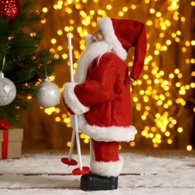 Дед Мороз под елку «Зимнее волшебство. Новогодняя игрушка на лыжах», 29 см. Дед Мороз высотой 29 см станет прекрасным дополнением Вашего интерьера. Украшение идеально сочетается с различнями стилями интерьера. Его компактные размеры делают его универсальным решением для любой елки или праздничной композиции. Поставьте его под елку — и он станет центральной фигурой вашего праздничного оформления. Создайте свою историю зимней сказки — пусть этот Дед Мороз подарит вам атмосферу волшебства!