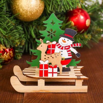 Декор новогодний «Снеговик с оленем на санях». Декор «Снеговик с оленем на санях» — это праздничная деревянная фигурка, которая добавит уюта в новогодний интерьер. Компактный размер позволяет разместить ее на столе, полке или в детской комнате. Декор создаст атмосферу зимней сказки. Изделие выполнено в скандинавском стиле и прекрасно подходит для украшения дома и офиса. <b> Преимущества</b> <ul> <li> Экологичный материал — фигурка изготовлена из дерева.</li> <li> Оригинальный дизайн добавит праздничного настроения в любой уголок.</li> <li> Подходит для любых помещений и разных стилей интерьера.</li> </ul> <b> Создайте волшебство</b> Этот декор станет отличным дополнением новогодней коллекции или подарком для близких.