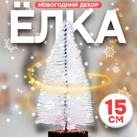 Декор новогодний «Ёлка в белом цвете с блестками», 8×8×15 см. Декор в виде миниатюрной елочки станет отличным украшением вашего дома во время зимних праздников — Нового года и Рождества. Компактный размер позволит разместить ее в любом уголке и создать при этом уютную волшебную атмосферу. <b> Особенности</b> <ul> <li> Высота елочки — 15 см. Ее диаметр — 8 см.</li> <li> Ёлочка расположена на подставке, сделанной из экологически чистого материала — дерева.</li> </ul> Декоративная елочка станет хорошим решением для создания праздничного настроения в доме или офисе. Она отлично дополнит композицию из новогодних украшений или будет самостоятельным элементом декора. Подойдет как для домашнего использования, так и для небольших рабочих пространств. Декор можно использовать как подарок, который порадует коллег или друзей и станет приятным напоминанием о наступающих праздниках. Также это удачное решение для тех, кто предпочитает минимализм в новогоднем оформлении.