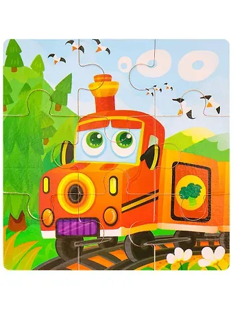 Деревянная пазл-рамка (14,5х14см) «ПАРОВОЗ» (9 элементов) (окраш.рамка) Арт.AN02637