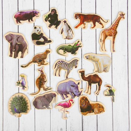 Деревянные магниты «Дикие животные», набор 20 шт.. Набор магнитов поможет в обучении малыша дома, в детском саду или школе. Занятия с таким визуальным материалом развивают кругозор крохи. Магниты можно использовать и в сюжетно-ролевых играх. Для этого подойдет любая металлическая поверхность. Эта полезная игрушка способна заинтересовать и увлечь малыша. Она превратит процесс обучения в веселое занятие. В наборе вы найдете 20 магнитов с изображениями диких животных, доска в комплект не входит.