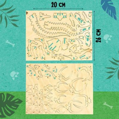 Деревянный конструктор «Скелет Тираннозавра». Конструктор «Скелет Тираннозавра» — это многофункциональная игрушка, которая способствует развитию моторики и образного мышления у ребенка. <b> Как собрать конструктор</b> <ol> <li> Выдавите из основы все элементы.</li> <li> Ошкурите края деталей наждачной бумагой (в комплект не входит).</li> <li> Возьмите инструкцию и следуйте каждому шагу.</li> <li> Для лучшего скрепления деталей используйте клей ПВА (в комплект не входит).</li> <li> Ваша 3D-фигурка готова!</li> </ol> <b> Особенности конструктора</b> <ul> <li> Комплект состоит из 54 деревянных элементов.</li> <li> Размер модели в собранном виде: 33,5 × 7 × 20 см.</li> <li> В комплекте есть подробная инструкция для сборки фигурки.</li> <li> Рекомендован для детей от 3 лет.</li> </ul>