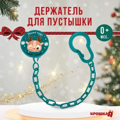 Держатель для соски — пустышки «Наше чудо», новогодний, на цепочке, зеленый, Крошка Я. Прищепка для пустышки предотвратит потерю маленького предмета. Используйте специальный держатель, и соска всегда будет под рукой! Изделие фиксируется на одежде ребенка. На конце цепочки есть карабин, который зацепляется за кольцо пустышки. Надежное крепление убережет вещь от падения на пол, если малютка случайно выронит ее изо рта. С держателем можно играть, притягательный дизайн точно понравится малышу. Товар изготовлен из качественного нетоксичного материала. Подходит для деток с рождения. Прищепка-держатель станет прекрасным подарком для малышей и родителей! Подарите малышу Новогоднее настроение малышу в самый волшебный праздник!
