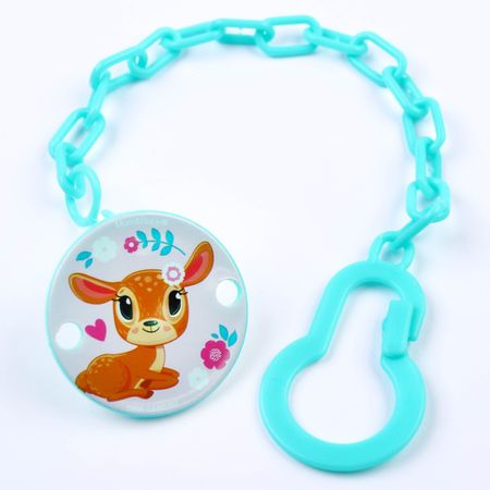 Держатель для соски — пустышки «Мамы и малыши: олененок», на цепочке. Прищепка для пустышки предотвратит потерю маленького предмета. Используйте специальный держатель, и соска всегда будет под рукой! Изделие фиксируется на одежде ребенка. На конце цепочки есть карабин, который зацепляется за кольцо пустышки. Надежное крепление убережет вещь от падения на пол, если малютка случайно выронит ее изо рта. С держателем можно играть, притягательный дизайн точно понравится малышу. Товар изготовлен из качественного нетоксичного материала. Подходит для деток с рождения.