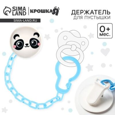 Держатель для соски — пустышки Крошка Я «Панда», на цепочке. Прищепка для пустышки предотвратит потерю маленького предмета. Используйте специальный держатель, и соска всегда будет под рукой! Изделие фиксируется на одежде ребенка. На конце цепочки есть карабин, который зацепляется за кольцо пустышки. Надежное крепление убережет вещь от падения на пол, если малютка случайно выронит ее изо рта. С держателем можно играть, притягательный дизайн точно понравится малышу. Товар изготовлен из качественного нетоксичного материала. Подходит для деток с рождения.
