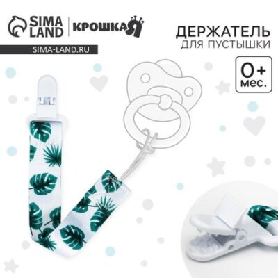 Держатель для соски — пустышки Крошка Я «Листья», на ленте. Прищепка для пустышки предотвратит потерю маленького предмета. Используйте специальный держатель, и соска всегда будет под рукой! Изделие фиксируется на одежде ребенка. На конце цепочки есть карабин, который зацепляется за кольцо пустышки. Надежное крепление убережет вещь от падения на пол, если малютка случайно выронит ее изо рта. С держателем можно играть, притягательный дизайн точно понравится малышу. Товар изготовлен из качественного нетоксичного материала. Подходит для деток с рождения.
