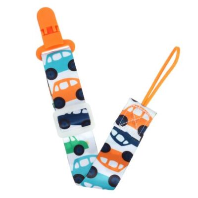 Держатель для соски — пустышки M&B «Машинки», на ленте. Прищепка для пустышки предотвратит потерю маленького предмета. Используйте специальный держатель, и соска всегда будет под рукой! Изделие фиксируется на одежде ребенка. На конце цепочки есть карабин, который зацепляется за кольцо пустышки. Надежное крепление убережет вещь от падения на пол, если малютка случайно выронит ее изо рта. С держателем можно играть, притягательный дизайн точно понравится малышу. Товар изготовлен из качественного нетоксичного материала. Подходит для деток с рождения.