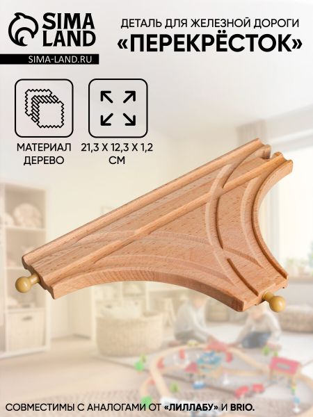 Деталь для железной дороги «Перекресток», 21.3×12.3×1.2 см. Деталь для железной дороги — дополнение к основному конструктору. С ее помощью вы сможете увеличить длину вашей железной дороги или изменить ее траекторию. Фантазируйте и соберите свой неповторимый маршрут для игрушечных поездов! <b> Особенности</b> <ul> <li> Деталь для железной дороги изготовлена из экологически чистого материала — дерева бука. Также благодаря этому деталь долговечна.</li> <li> Деталь хорошо отшлифована, не имеет зазубрин и поэтому абсолютно безопасна для детей.</li> <li> Все детали железной дороги скрепляются между собой как пазлы.</li> </ul> Игра с железной дорогой способствует развитию воображения, мелкой моторики и координации движений ребенка. <b> Данные рельсы совместимы с аналогами от «ЛИЛЛАБУ» и BRIO.</b>