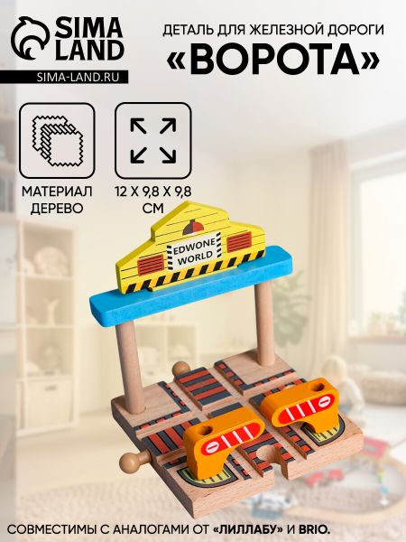 Деталь для железной дороги «Ворота», 12×9.8×9.8 см. Деталь для железной дороги «Ворота» — дополнение к основному конструктору. С ее помощью вы сможете дополнить и увеличить длину вашей железной дороги или изменить ее траекторию. Фантазируйте и соберите свой неповторимый маршрут для игрушечных поездов! <b> Особенности</b> <ul> <li> Деталь для железной дороги изготовлена из экологически чистого материала — дерева бука. Также благодаря этому деталь долговечна.</li> <li> Деталь хорошо отшлифована, не имеет зазубрин и поэтому абсолютно безопасна для детей.</li> <li> Все детали железной дороги скрепляются между собой как пазлы.</li> </ul> Игра с железной дорогой способствует развитию воображения, мелкой моторики и координации движений ребенка. <b> Данные рельсы совместимы с аналогами от «ЛИЛЛАБУ» и BRIO.</b>