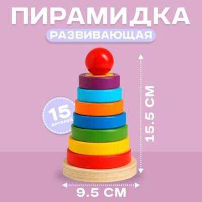 Детская развивающая пирамидка «Разные фигуры» 9.5×9.5×15.5 см. Деревянная пирамидка «Разные фигуры» — это яркая развивающая игрушка для детей от 3 лет. Она помогает малышу изучать цвета, формы, развивать логику, моторику и пространственное мышление. В набор входит 15 деталей для увлекательных занятий. <b> Особенности</b> <ul> <li> Изготовлена из натурального дерева, покрыта безопасными красками.</li> <li> 15 элементов: фигурки разной формы для сборки.</li> <li> Подходит для мальчиков и девочек.</li> </ul> Собирая пирамидку, ребенок учится различать цвета и формы, развивает логическое мышление и мелкую моторику. Игрушка знакомит с геометрическими фигурами и помогает освоить навыки сортировки. Это отличный способ провести время с пользой и подготовиться к школе. <b> Почему выбирают эту пирамидку?</b> <ul> <li> Экологичный материал и яркое, безопасное покрытие.</li> <li> Многофункциональность: обучение и развитие в одной игрушке.</li> <li> Подходит для детей от 3 лет, способствует гармоничному развитию.</li> </ul>