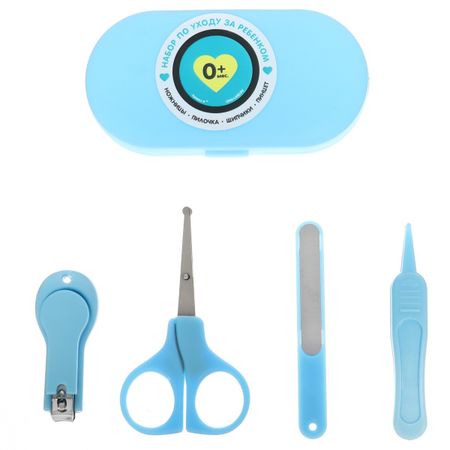 Детский маникюрный набор: ножницы, книпсер, пилка, пинцет, голубой. Особенности: Закругленные кончики обеспечат полную безопасность во время использования. Мягкая пилочка не поранит нежную кожу малыша. За счет удобной ручки щипчики комфортно держать в руке. Изделие не содержит вредное вещество бисфенол А.