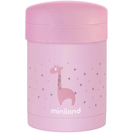 Детский термос для еды Miniland Silky Thermetic идеален для детского питания. Термос поддерживает температуру жидкости в течение длительного времени и имеет мягкую прорезиненную и очень приятную на ощупь поверхность. Особенности Прочный корпус Корпус термоса выполнен из нержавеющей стали, защищён от протеканий и устойчив к ударам и падениям 2 контейнера Объём термоса — 700 мл. Внутри содержится 2 раздельных пластиковых контейнера: 350 и 200 мл