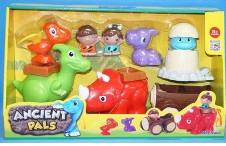 Вы ищите подарок для малыша от 1,5 до 3 лет с идеальным сочетанием «цена-качество», игровые наборы KEENWAY – то, что вам нужно. Дарите детям радость, безопасность и качество игры! Дети любят динозавров – всем известный факт. Динозавры притягивают внимание девочек и мальчиков разных возрастов своей необычностью, разнообразием видов и тем, что будоражат воображение детей – ведь они существовали миллионы лет назад (невозможно представить, как это много!). Как и драконы, динозавры заставляют деток фантазировать о том, что могло происходить с ними в доисторическую эпоху – как они рождались, как общались между собой, как ели, как спали и ещё много разных «как?». Подарите малышу игровой набор «Дино-парк» и придумывайте вместе с ним сюжеты из жизни древних животных! Комплектация и функциональность В набор входят: 4 фигурки динозавров (трицератопс, птеродактиль, паразауролофус и его детеныш), 1 яйцо с невылупившимся детёнышем, 2 фигурки пещерных людей, 1 доисторическая машинка. Фигурки людей надежно фиксируются в машинке и в специальном седле, что расположено на одном из динозавриков. На яйце расположена кнопка, при нажатии на которую маленькая мордочка детеныша выглядывает из скорлупы. Игрушки-динозаврики будут долго увлекать и радовать вашего ребенка. Проверьте вместе! Игрушка безопасна для детей! Все детали набора «Дино-парк» выполнены из высококлассного пластика. Продукция сертифицирована, экологически безопасна для ребенка, использованные красители не токсичны и гипоаллергенны.