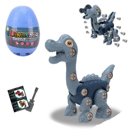 Этот необычный пластиковый динозаврик-конструктор спрятан внутри большого яйца. Внутри яйца спрятаны динозаврика 3-х видов: тираннозавр, трицератопс, птеродактиль.