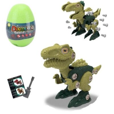 Этот необычный пластиковый динозаврик-конструктор спрятан внутри большого яйца. Внутри яйца спрятаны динозаврика 3-х видов: тираннозавр, трицератопс, птеродактиль.