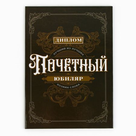 Диплом «Почетный юбиляр», А5, 21 х 15 см.. Праздничный диплом — прекрасный вариант оригинального поздравления. Изящные изображения, теплые искренние слова, поле для имени получателя и список достижений — вот яркие черты этого аксессуара. На любом празднике приветствуются как официальные поздравления, так и шуточные. Креативное дизайнерское решение и невероятно позитивное содержание диплома удивят виновника торжества и зарядят присутствующих положительными эмоциями. Изделие выполнено из качественного ламинированного картона и бумаги.