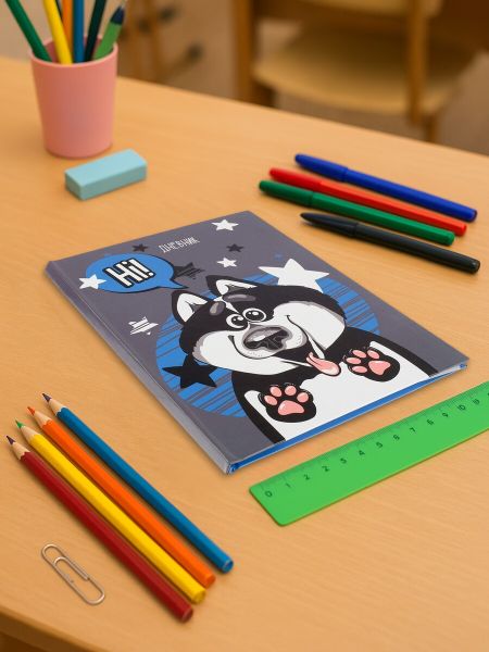 Дневник школьный для 1-11 классов, «Хаски», твердая обложка 7БЦ, глянцевая ламинация, 40 листов. Классический школьный дневник Calligrata выполняет функции журнала регистрации оценок и домашних заданий, полученных на уроках, замечаний по поведению и прилежанию, средства общения учителей и родителей, а также является показателем успеваемости школьников. Предназначен для учащихся 1-11 классов. Твердая обложка надежно защищает бумагу и долго сохраняет привлекательный внешний вид. Благодаря глянцевой ламинации краски на изображении становятся более яркими и насыщенными, исключается возможное истирание рисунка. Внутренний блок содержит 40 листов и состоит из офсетной белой бумаги плотностью 60 г/м2. Школьный дневник — неотъемлемый атрибут учебной жизни! <b> Приобретайте товары для учебы Calligrata в нашем интернет-магазине!</b>