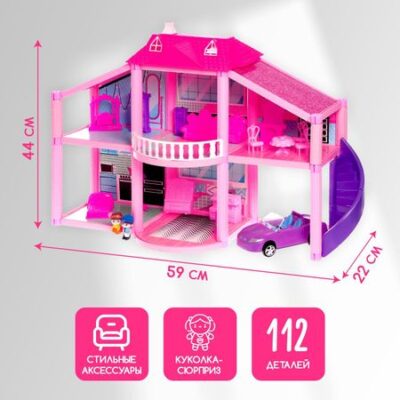 Дом для кукол «Кукольный дом» с аксессуарами. Малышка придет в восторг от яркого домика. Стильная мебель, модный интерьер — красочные разнообразные предметы с первых секунд завладеют вниманием девочки. Малышка создаст настоящий райский уголок для всей кукольной семьи и обустроит для них каждую комнату дома. А еще придумает множество увлекательных сюжетно-ролевых игр. В наборе есть все необходимое: комод и кровать, кухонный гарнитур и холодильник, пианино в гостиной. Размер дома: 59 × 22 × 44 см. Игры с набором способствуют развитию воображения, мышления, цветового и эмоционального восприятия ребенка. Девочка осваивает социальные роли, проецирует на сюжеты модели поведения взрослых, учится заботе и ответственности.