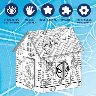 Дом-раскраска 3 в 1 «Человек-паук», набор для творчества. Домик-раскраска способствует формированию творческих способностей, мелкой моторики, усидчивости и внимательности. Можно раскрашивать рисунки на стенах и играть с домиком. Окна и двери открываются. Особенности домика: Двери и окошки открываются. В набор входят 5 фломастеров разных цветов. На стены нанесены рисунки новогодней тематики. Конструкция состоит из 6 элементов. Для сборки не требуется клей.