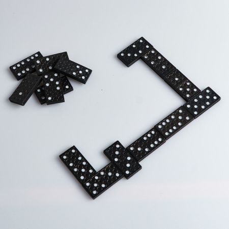 Домино «Время игры», 14.7×5×2.7 см, костяшка 3.7×1.9 см. <b> Домино</b> — игра, которая пользовалась большой популярностью у наших дедушек. Собираясь вечером во дворе за большим столом, мужчины с удовольствием выкладывали цепочки из черно-белых костяшек. Такие посиделки помогали расслабиться и снять напряжение. Сегодня в домино играют даже дети, ведь это способствует развитию арифметических способностей, стратегического мышления, навыков общения и улучшает память. <b> В наборе:</b> костяшки — 28 шт. (3.7 см х 1.9 см х 0.5 см).