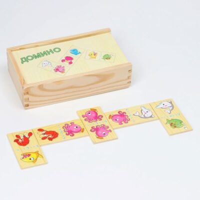Домино «Подводный мир» 10.5×18.5×5 см. Деревянное домино «Подводный мир» — это увлекательная настольная игра, которая знакомит детей с обитателями морских глубин. Игра рассчитана на 2–4 игроков, что делает ее отличным выбором для семейного досуга или игр с друзьями. <b> Особенности</b> <ul> <li> Изготовлено из экологичного дерева, безопасного для детей.</li> <li> Игра помогает изучать фигуры, цвета и развивать логическое мышление.</li> <li> Подходит для детей от 3 лет.</li> <li> Компактный размер удобен для хранения и транспортировки.</li> </ul> <b> Почему выбирают это домино?</b> Домино «Подводный мир» — это не только развлечение, но и полезный инструмент для развития ребенка. Яркие изображения морских обитателей делают игру познавательной, а простые правила позволяют быстро включиться в процесс. Это идеальный выбор для тех, кто ценит качественные и развивающие игры.
