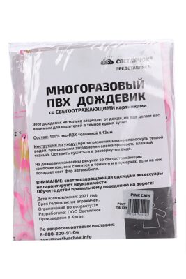 Дождевик Светлячок прозрач со светоотраж принтом котики с зонтами капюшон на резинке cat 116-122