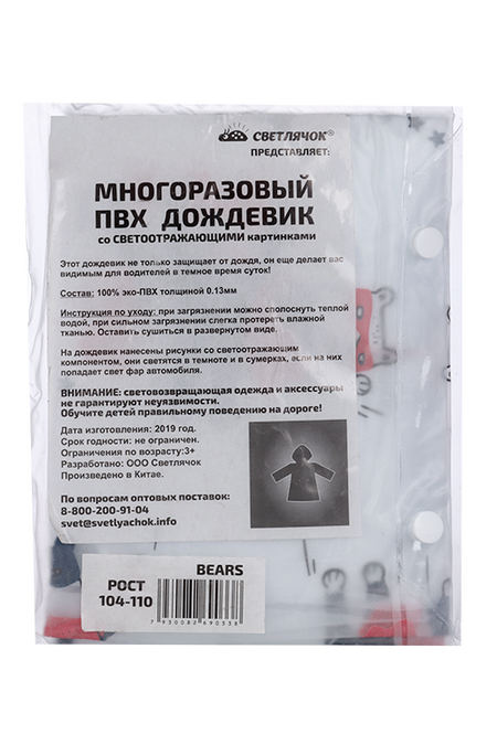 Дождевик Светлячок прозрач светоотраж котики с зонтами капюшон на резинке cat 104-110