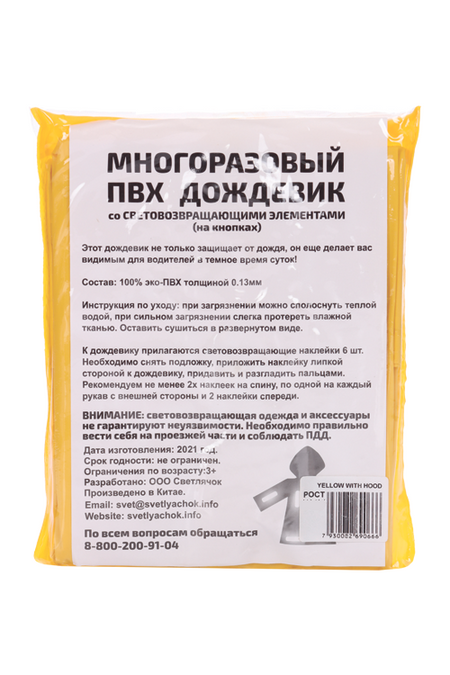 Дождевик Светлячок желтый светоотраж капюшон на кнопках (7930082690673)