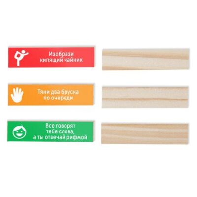 Дженга «Падающая башня с фантами», 54 бруска, 5+. Перед вами увлекательная игра, которую так любят взрослые и дети. Но здесь вам нужно будет не только вытягивать бруски из башни, но и выполнять веселые фанты! Где можно играть в "Падающую башню"? Дома, в гостях, на любом празднике, в кафе, где угодно! постройте из брусков башню: выкладывайте по три бруска в ряд друг на друга. Блоки каждого следующего ряда кладутся перпендикулярно блокам предыдущего. По очереди вытягивайте бруски и складывайте их на самый верх башни, но делайте это так, чтобы она не упала. А также не забывайте выполнять задания, которые написаны на каждом бруске! В игре вы найдете три типа заданий, они отмечены специальным, обозначениями: "Рука"-вытянули брусок — выполняйте веселое задание! "Лицо"-следующий брусок нужно вытянуть указанным способом. "Человечек"-слово нужно изобразить с помощью мимики и жестов, не произнося ни звука. Побеждает тот, кто последним вытянул брусок перед тем, как башня развалилась! Состав: 54 деревянных бруска. 54 наклейки с заданиями. Играйте и веселитесь вместе с ЛАС ИГРАС!