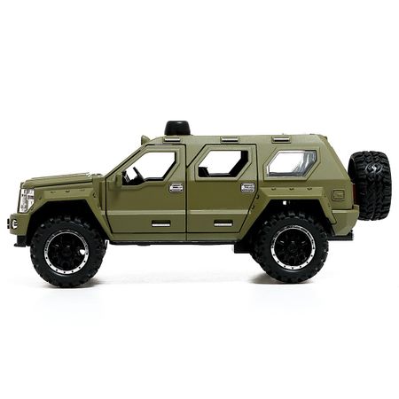 Джип металлический «Армия», 1:24, открываются двери, капот, багажник, инерция, цвет зеленый. Машина инерционная «Армия» — детально проработанный транспорт. Машинка дополнит игрушечный автопарк и станет прекрасным подарком для маленького любителя техники. <b> Особенности машинки</b> <ol> <li> Игрушка выполнена из металла и пластика с использованием безопасных красителей.</li> <li> Встроен инерционный механизм. Привести транспорт в движение не составит труда: необходимо лишь отвести машинку назад и отпустить. Игрушка быстро наберет скорость и мгновенно достигнет намеченной цели.</li> <li> Нажмите на машинку, и у нее загорятся передние и задние фары!</li> <li> Воспроизводит звуки работы двигателя, набора скорости, торможения.</li> <li> У техники открываются передние двери, багажник и капот, совсем как у настоящего автомобиля.</li> </ol> <b> Неоспоримая польза</b> Сюжетно-ролевые игры с игрушечным транспортом способствуют развитию воображения, мышления и эмоционального восприятия. Товар предназначен для детей старше 3 лет.
