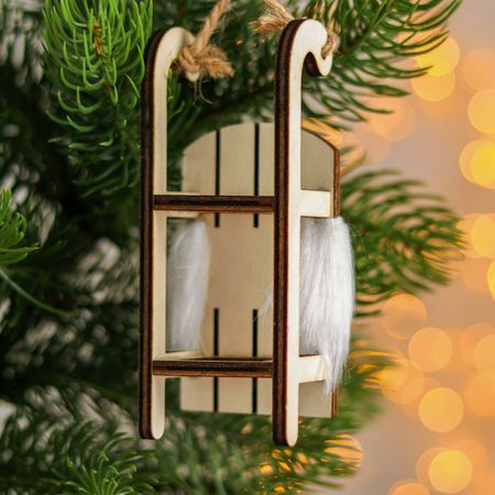 Елочная игрушка «Санки с шишками», 5.5×5×12.5 см. Новогодняя подвеска «Санки с шишками» — это стильное и уютное украшение для вашего дома. Подвеска выполнена из натурального дерева, что делает ее прочной и долговечной. Новогодняя форма подвески создаст праздничную атмосферу и станет отличным акцентом в вашем декоре. <b> Особенности подвески</b> <ul> <li> Материал — дерево: экологичный и безопасный для здоровья.</li> <li> Универсальный дизайн: подвеска отлично подходит для украшения елки, окон или стен.</li> <li> Компактный размер: легко впишется в любую композицию и не займет много места.</li> </ul> <b> Создайте атмосферу праздника</b> Эта подвеска станет отличным дополнением к вашему новогоднему декору. Она помогает создать уютную и праздничную атмосферу, которая понравится как детям, так и взрослым. Украшайте свой дом с любовью и удовольствием!