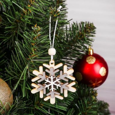 Елочная игрушка «Праздничная снежинка». Новогодняя деревянная подвеска «Праздничная снежинка» — это стильное и уютное украшение для вашего дома. Подвеска выполнена из качественных материалов, поэтому она прочная и долговечная. Украшение наполнит дом праздничной атмосферой и станет отличным акцентом в вашем новогоднем декоре. <b> Особенности подвески</b> <ul> <li> Качественные материалы: аксессуар экологичный и безопасный для здоровья.</li> <li> Универсальный дизайн: подвеска отлично подходит для украшения елки, окон или стен.</li> <li> Компактный размер: легко впишется в любую композицию и не займет много места.</li> </ul> <b> Создайте атмосферу праздника</b> Эта подвеска станет отличным дополнением к вашему новогоднему декору. Она помогает создать уютную и праздничную атмосферу, которая понравится детям и взрослым. Украшайте свой дом с любовью и удовольствием!
