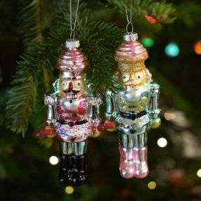 Главная » Товары для детей Елочные игрушки Щелкунчик (2 шт) Просмотров 3 Размер 5,6×4,1×14,6 см. Материал: cтекло