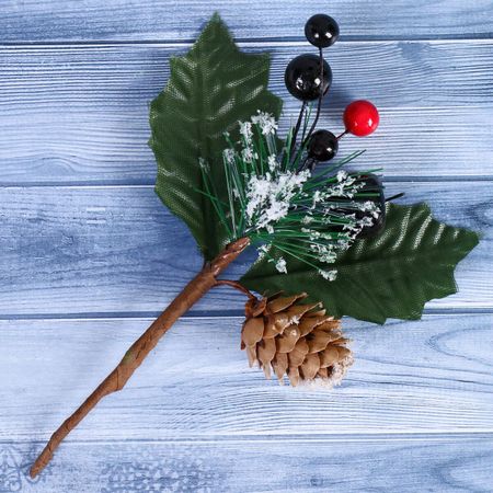 Еловая ветка декоративная «Зимнее волшебство. Мечты», с ягодами и шишками, 14 см. Декоративная ветка «С ягодами и шишками» — это мягкий и праздничный элемент для новогоднего убранства. Маленькая композиция высотой 14 см выполнена из прочного пластика, дополнена ягодами и шишками — украшение в стиле новогоднего барокко и скандинавской простоты для дома, офиса или подарочного оформления. Решение для тех, кто ценит свет, форму и зимнюю атмосферу в мини-формате. <b> Особенности</b> <ul> <li> Тип — декоративная ветка, подходит как для составления композиций, так и как самостоятельный акцент.</li> <li> Материал — пластик, долговечный и безопасный при использовании в интерьере и оформлении.</li> <li> Форма — компактный размер позволяет использовать ветку в ограниченном пространстве: на столе, зеркале, окне.</li> <li> Декор — ягоды и шишки усиливают зимнюю тематику и добавляют образу движения, тепла и свежести.</li> <li> Стиль — сочетание роскоши барокко и лаконичности скандинавского дизайна в одной целостной форме без лишней детализации.</li> </ul> <b> Праздник начинается с одного взгляда на ягоды и крону</b> Эта ветка делает пространство дома частью вашей личной истории о чуде и подарках. Красные акценты и зеленые тона работают вместе, чтобы передать дух Нового года и предпраздничное ожидание. Используйте ее как самостоятельный элемент или как часть общей композиции — одинаково хорошо усиливает атмосферу торжества и доброжелательность интерьера.