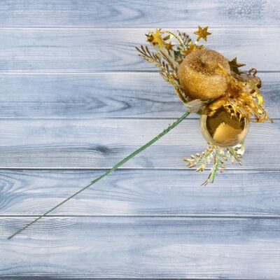 Еловая ветка декоративная «Зимнее волшебство. Сказка», яблочко, подарок, 15 см, серебристо-золотой. Эта декоративная ветка для новогоднего оформления выполнена из металла и пластика, высотой 15 см. В сочетании серебристо-золотого оттенка она создает праздничную атмосферу и добавляет изысканности любому интерьеру. Стиль ар-деко, классика, новогоднее барокко и шебби-шик объединяются в этом украшении, делая его универсальным элементом зимнего декора и подарочной композиции. Особенности <ul> <li> Высота – 15 см, идеально подходит для создания выразительных новогодних украшений.</li> <li> Цвет – серебристо-золотой, символизирующий богатство, тепло и праздничное настроение.</li> <li> Материалы – металл и пластик обеспечивают долговечность и легкость в использовании.</li> <li> Тематика – Новый год, подчеркивающая атмосферу сказочного зимнего праздника.</li> <li> Декоративные элементы – яблочко и подарок создают яркие акценты в композиции.</li> <li> Стиль – сочетание ар-деко, классики и шебби-шика делает украшение универсальным для различных интерьеров и праздничных решений.</li> </ul> Преимущества использования <ul> <li> Легко сочетается с другими новогодними декорациями: гирляндами, снежинками и декоративными элементами.</li> <li> Добавляет элегантности и праздничного настроения в интерьер или на праздничный стол.</li> <li> Благодаря качественным материалам сохраняет привлекательный внешний вид на протяжении всего сезона.</li> </ul> Эта композиция станет стильным дополнением к вашему новогоднему декору. Ее серебристо-золотой оттенок и богатый дизайн создают ощущение зимней сказки и роскоши. Универсальность стиля позволяет легко интегрировать ее в любой интерьер или праздничную композицию. Простая в использовании и долговечная, она поможет создать уютную атмосферу дома или в офисе при подготовке к Новому году.