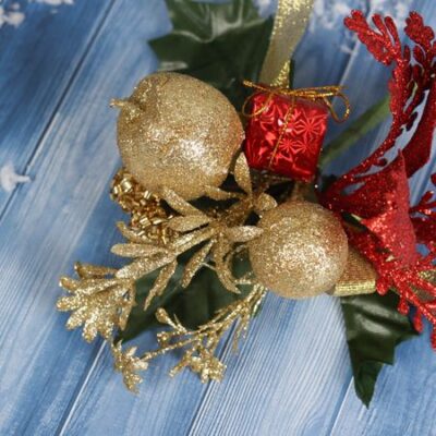 Еловая ветка декоративная «Зимнее волшебство. Мечты», 20 см, золотистая. Декоративная ветка «Мечты золотые» — это теплый и изысканный акцент для новогоднего убранства. Веточка высотой 20 см выполнена из прочного пластика — украшение в стиле ар-деко, классики и новогоднего барокко для тех, кто ценит свет, текстуру и атмосферу праздника в мягкой и универсальной форме. <b> Особенности</b> <ul> <li> Тип — декоративная ветка, используется как самостоятельный элемент или как часть зимней композиции на Новый год.</li> <li> Материал — пластик, долговечный и безопасный при использовании в оформлении дома или офиса.</li> <li> Форма — компактные 20 см делают ее удобной для размещения на полке, рамке, елке или входной зоне.</li> <li> Цвет — золотистый, добавляет образу движения, света и роскоши без лишней пестроты.</li> <li> Стиль — сочетание строгости классики и роскоши барокко в одной целостной и логичной композиции.</li> </ul> <b> Праздник начинается с одного взгляда на золотую крону</b> Эта ветка превращает пространство в уголок вашей истории о чуде и подарках. Золотые тона работают вместе с белым, красным или зеленым декором, чтобы передать дух Нового года и предпраздничное ожидание. Используйте как самостоятельный элемент или в составе общего оформления — одинаково ярко усиливает атмосферу торжества и доброту дома.